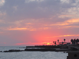 El cas és que aquí, per fi, s'ha instaurat la primavera. De tant en tant ens prèn el pèl un dia gris, de cel blanc (reminiscències dels cels bilbains que tant vaig apreciar....després d'un temps d'aclimatació, tot sigui dit). Amb la rambla tant aprop, en el meu nou piset montevideano, és un plaer i un acte quotidià i fàcil de dur a terme, el baixar a la rambla just a les 8 menys quart, quan s'envà el sol, y poder veure una posta de sol com mai he vist. A més, té el plus de sentir-ho cuotidià, a l'abast de cada dia... quan veig que la llum que entra per la finestra de la meva habitació es comença a posar groga (aquella llum de foto total), zas, escalfo aigua, cebo el mate i a la rambla falta gent! també hi ha la vessant de passeig en bici, fins a ciudad vieja normalment, on hi ha el Santa, un macro bar manolo que té terrasseta i comparteix "vereda" amb un parell de bars de modernillos. El cas és que mai havia tingut l'oportunitat de veure cada dia postes de sol amb una immensitat de res davant, el río de la Plata, que em permet gaudir dels canvis de colors al cel fruit de l'escapada del sol. No era conscient que el pas del dia a la nit era tan ràpid, tan fugaç i tan magnídic. Dec sonar pesadeta amb el sol cap aquí, el sol cap allà però és que em té fascinada.